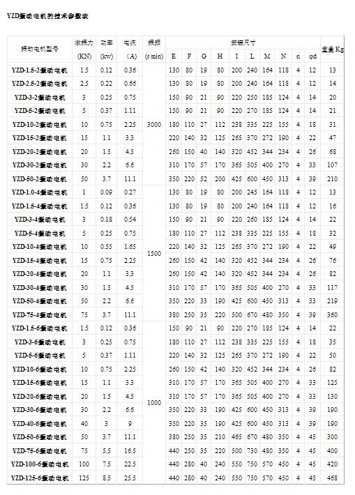 7.振動電機的設(shè)計可隨需要做適當(dāng)?shù)恼{(diào)整,以適用于特殊的環(huán)境:660V或60HZ特殊電壓及電源頻率,氣溫極高或極低的工作場所、防塵防水要求較高的場所、地處海拔較高的場所等。