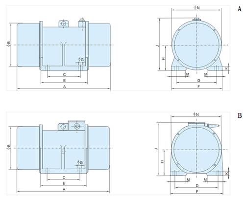 四、XVM-A振動電機(jī)外形及安裝尺寸: