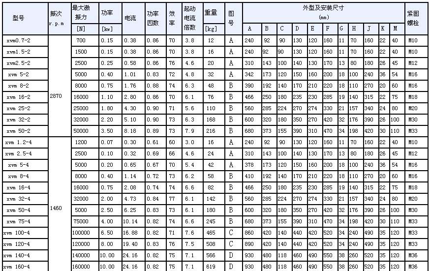 一、XVM-A系列振動電機(jī)是一種高效節(jié)能的通用性激振源,體積小,激振力大,結(jié)構(gòu)可靠,使用維護(hù)方便,廣泛應(yīng)用于礦山、煤炭、電力、化工、糧食加工、冶金、鑄造、輕工、醫(yī)藥等行業(yè)。是實現(xiàn)粉狀、粒狀、塊狀等散體料機(jī)械化篩分、輸送、破碎、充填、防堵塞的理想激振源。本機(jī)可單機(jī)使用,也可多機(jī)組合使用。