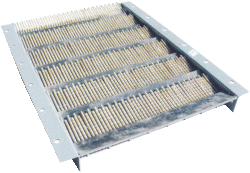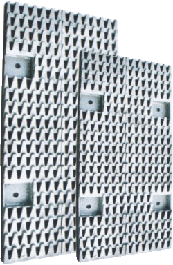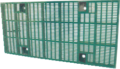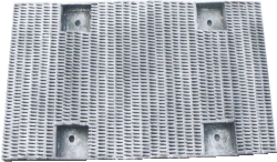 該篩板的開孔率最高可達80%,有一定水分的粘物,靠其高頻自振抖落,不易粘結(jié)在篩條上造成堵塞,是粘性或含有纖維物的難篩物料最為理想的篩板.