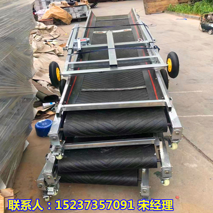 折疊式傳送帶將貨物裝車的方式,很多是用人工往返搬運才完成的,也有用鏟車搬運的, 用這些搬運方式的效率較低;裝備是使用各類連續(xù)的輸送機,如水平式或傾斜式 或垂直式輸送機,但經(jīng)常需要將多種機型拼湊組合使用,造成諸多不便,且成本較高,車載折疊輸送機攜帶方便,只要是袋裝的糧食、石灰、飼料、化肥等均可進行裝車打垛,車載折疊皮帶輸送機具有裝車速度快,攜帶方便,操作簡單,占地面積小等優(yōu)點。折疊式傳送帶有沒有滿足你的需要呢,不僅可以用來輸送散料,還可以輸送袋裝糧食,肥料包,化肥袋子,水泥袋子、紙箱等等物品。是一種多功能的輕型皮帶輸送機。