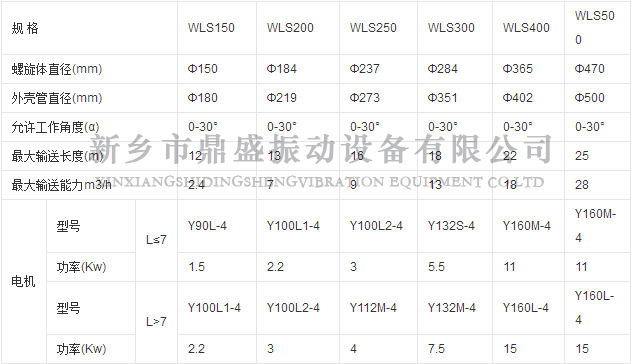 無(wú)軸螺旋輸送機(jī)技術(shù)參數(shù)表: