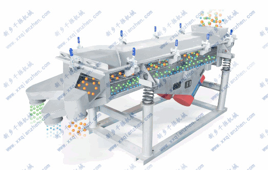 直線篩利用振動電機(jī)激振作為振動源,使物料在篩網(wǎng)上被拋起,同時向前作直線運(yùn)動,物料從給料機(jī)均勻地進(jìn)入篩分機(jī)的進(jìn)料口,通過多層篩網(wǎng)產(chǎn)生數(shù)種規(guī)格的篩上 物、篩下物、分別從各自的出口排出。具有耗能低、產(chǎn)量高、結(jié)構(gòu)簡單、易維修、全封閉結(jié)構(gòu),無粉塵溢散,自動排料,更適合于流水線作業(yè)。
