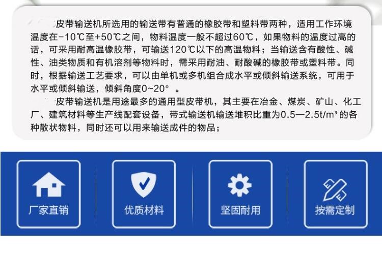 皮帶機碎石傳送帶可在輸送過程中同時完成若干工藝操作,所以應用十分廣泛。皮帶輸送機廣泛用于礦山、碎石場、冶金、建材、化工、選礦、煤礦等行業(yè)的輸送物料。皮帶輸送機,膠帶輸送機適用于輸送堆積密度小于1.67/噸/立方米,易于掏取的粉狀、粒狀、小塊狀的低磨琢性物料及袋裝物料,如煤、碎石、砂、水泥、化肥、糧食等。被送物料溫度小于60℃。輸送機是在一定的線路上連續(xù)輸送物料的物料搬運機械,又稱連續(xù)輸送機。輸送機可進行水平、傾斜和垂直輸送,也可組成空間輸送線路,輸送線路一般是固定的。其機長及裝配形式可根據(jù)用戶要求確定,傳動可用電滾筒,也可用帶驅(qū)動架的驅(qū)動裝置。