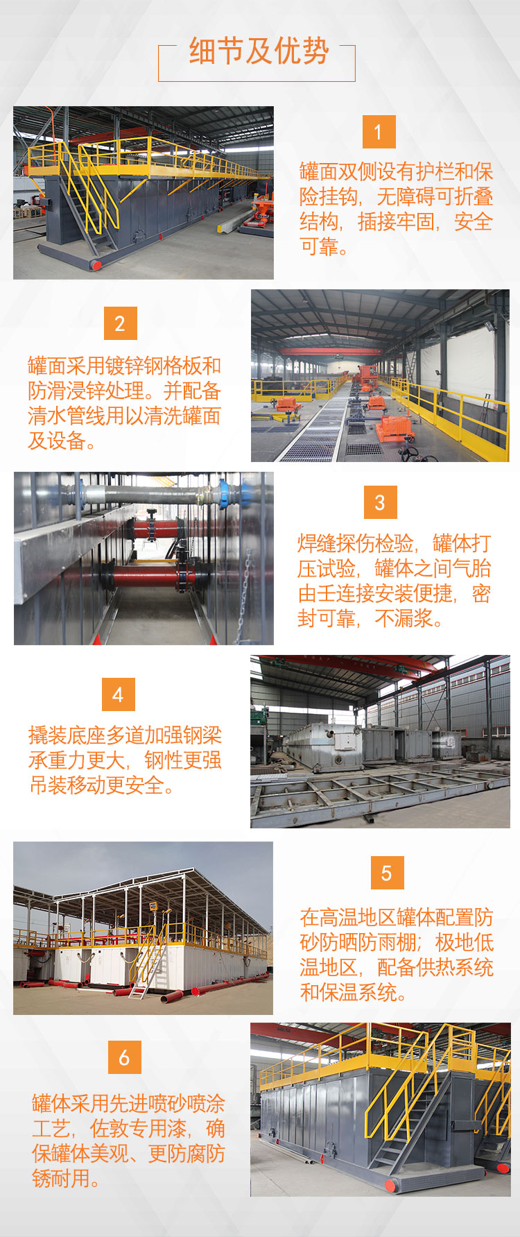 罐面雙側(cè)設(shè)有護欄和保險掛鉤,無障礙可折疊結(jié)構(gòu),插接牢固,安全可靠。
