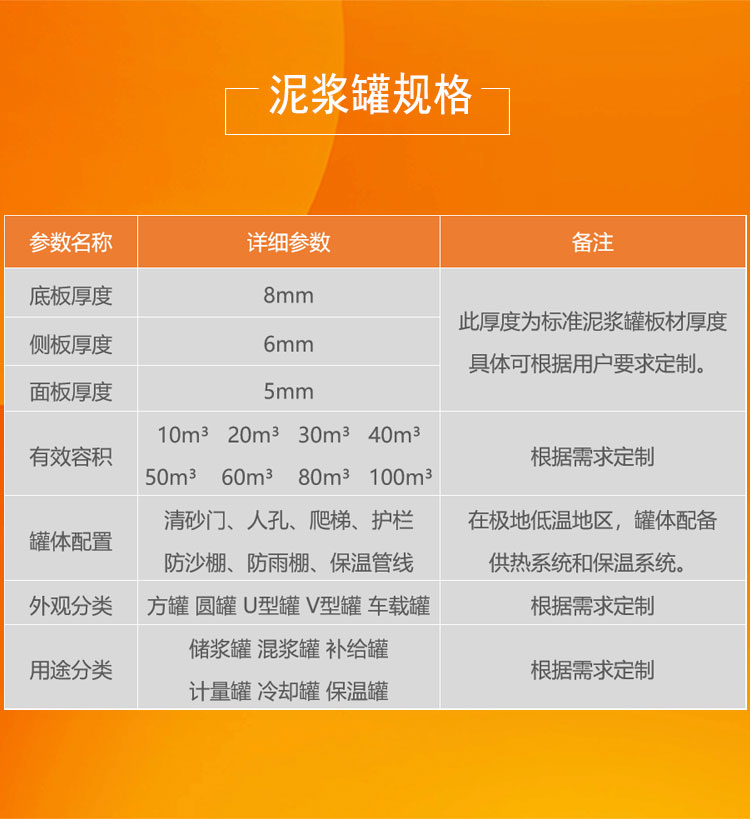 正道能源泥漿罐規(guī)格參數(shù):