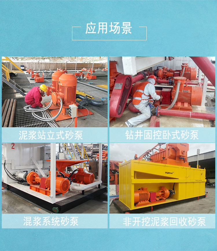 正道能源應(yīng)用場景:鉆井液砂泵應(yīng)用場景:可用于泥漿站(立式砂泵)、鉆井固控(臥式砂泵)、混漿系統(tǒng)、非開挖泥漿回收等不同行業(yè)項(xiàng)目場景中。