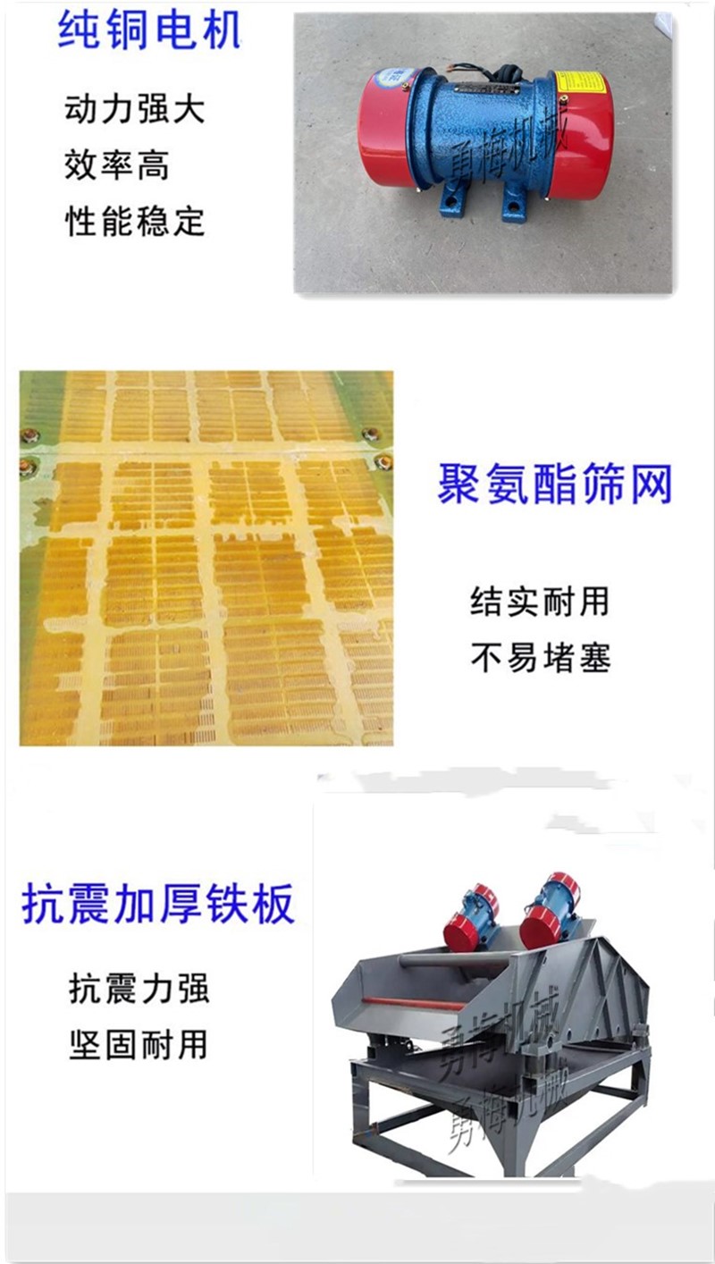 洗沙振動篩 聚氨酯尾礦干排篩 細沙泥沙高頻震動脫水篩主要作用是脫水、脫泥、脫介,可用于砂石料廠水洗砂、選煤廠煤泥回收、選礦廠尾礦干排等,因此也叫砂石脫水篩、礦用脫水篩、煤泥脫水篩、尾礦干排篩、高頻脫水篩等。脫水篩采用了雙電極自同步技術(shù),通用型偏心塊、可調(diào)振幅振動器。主要由篩箱、激振器、支承系統(tǒng)及電機組成。通過膠帶聯(lián)軸分別驅(qū)動兩個互不聯(lián)系的振動器作同步反向運轉(zhuǎn),兩組偏心質(zhì)量產(chǎn)生的離心力沿振動方向的分力疊加,反向離心抵消,從而形成單一的沿振動方向的激振動,使篩箱做作往復(fù)直線運動。