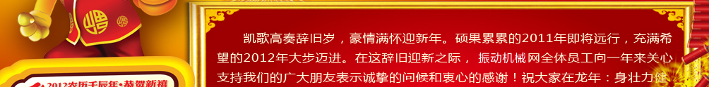 新的一年,新的開始;心的祝福,新的起點(diǎn)。值此2012年新春佳節(jié)即將來臨之際,新鄉(xiāng)市振源機(jī)械設(shè)備有限責(zé)任公司全體員工祝全國人民新年快樂!在新的一年里振源機(jī)械歡迎新老客戶與我們攜手共進(jìn),共創(chuàng)輝煌!